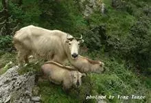 羚牛,偶蹄目牛科羚牛属哺乳动物,俗称扭角羚、野山牛、盘羊。其体形粗壮。尾短。吻鼻部隆起且裸露。前额隆起,毛短而蓬松。角基粗,由头顶长出后先向上升起,又突然翻转,靠近头部,复向外伸,然后又向后弯转,…全部>>