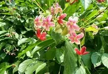 使君子 Jongkind)是使君子科、使君子属攀援灌木,叶对生,椭圆形,两面均被灰白色柔毛。穗状花序,倒挂下垂。花期夏秋。果有五棱,熟时黑色,种子白色。分布于印度、缅甸、菲律宾和中国。喜温润,深根性,…全部>>
