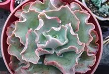 女王花笠,又名扇贝石莲花、女王花舞笠,是景天科拟石莲花属的多肉植物。由美国加利福尼亚州的育种师Dick Wright于1964年培育。特征是呈大波浪状褶皱的红色叶缘和气质高贵的粉紫色调。…全部>>