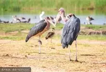 秃鹳鹳科秃鹳属的一种大而笨重的涉禽,体长110-135厘米,体重约10千克,站立时颈直起来,身高可达1.2米。嘴粗而长,脚亦甚长,上体黑灰色,具蓝黑色金属光泽。下体白色,…全部>>