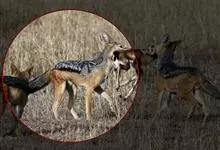 亚洲胡狼是金豺的指名亚种,体型中等、匀称,四肢修长,趾行性,利于快速奔跑。头腭尖形,颜面部长,鼻端突出,耳尖且直立,嗅觉灵敏,听觉发达。犬齿及裂齿发达;上臼齿具明显齿尖,…全部>>