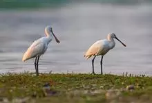 琵鹭,为6种长腿涉禽的统称。主要以虾、蟹、水生昆虫、昆虫幼虫、蠕虫、甲壳类、软体动物、蛙、蝌蚪、蜥蜴、小鱼等小型脊椎动物和无脊椎动物为食,偶尔也吃少量植物性食物。…全部>>