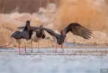黑鹳是鹳形目鹳科鹳属鸟类,俗称乌鹳、钢鹳、老鹤。黑鹳头、颈和脊均呈黑褐色,故名黑鹳。黑鹳上体羽黑色、并带有绿紫色金属光泽,胸腹部羽白色;嘴、腿均红色;两性相似;成鸟嘴长而直,基部较粗,…全部>>