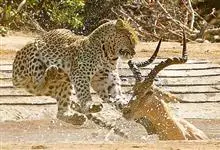 非洲豹是豹的指名亚种,体重40-90千克,时速可达70km。肌肉发达,脖子和头部结实有力。头小尾长,四肢短健;尾尖粗重,有助于它在高速奔跑时,保持身体的平衡。毛被黄色,满布黑色环斑;头部的斑点小而密,…全部>>