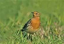 草地鹨:是雀形目鹡鸰科的鸟类,属小型鸣禽,体长约15厘米,体型较纤细。喙较细长,先端具缺刻;翅尖长,内侧飞羽极长,几与翅尖平齐;尾细长,外侧尾羽具白,野外停栖时,常做有规律的上、下摆动,腿细长,…全部>>
