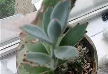 褐斑伽蓝是景天科伽蓝菜属的多年生多肉类植物,茎直立,多分枝,叶生于枝上,肉质叶片匙形,上面密被白色绒毛,下部全缘,叶缘上部有缺刻,缺刻处有深褐或棕色斑块。褐斑伽蓝原产非洲的马达加斯加岛。…全部>>