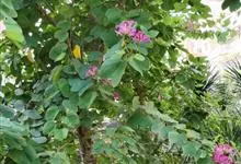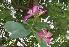 羊蹄甲,别名紫花羊蹄甲、玲甲花,是豆科羊蹄甲属的一种常绿乔木或灌木。树冠开展,枝桠低垂;树皮灰色至暗褐色,近光滑。枝幼时微被灰色短柔毛,后毛脱落;叶硬纸质,近圆形,基部浅心形,…全部>>
