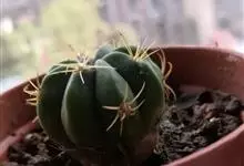 仙人球,是仙人掌科仙人球属的一种多年生多肉类草本植物;茎球形或椭圆形,绿色,肉质,棱上有丛生的针刺,黄色或黄褐色,长短不一,辐射状;叶细小,生长于刺丛内;花侧生淡红色或粉红色,长喇叭状,喇叭外部被鳞片,…全部>>