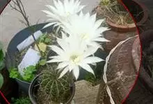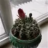 仙人球花 仙人掌科,仙人球属。植株单生或成丛。幼株球形,老株长成圆筒状,高可达75厘米,直径12-15厘米。球体暗绿色,具棱11-12。刺锥状,黑色,长1-1.5厘米。花着生于球体侧方,大型嗽喇叭状…全部>>