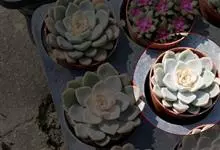 芙蓉雪莲是景天科拟石莲花属的植物。由于叶片表面覆盖着一层厚霜粉,通常呈现出白色;日照增多,温差增大后叶缘、叶尖会呈现出粉红色或橙红色。…全部>>