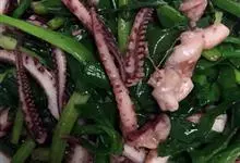 爆炒鱿鱼,是用鱿鱼制作的一道家常菜。鱿鱼有少量的脂肪和碳水化合物,含有大量的胆固醇,…全部>>