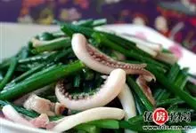 韭菜炒鱿鱼菜品 > 鱼 > 鱿鱼 > 韭菜炒鱿鱼