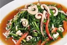 爆炒鱿鱼,是用鱿鱼制作的一道家常菜。鱿鱼有少量的脂肪和碳水化合物,含有大量的胆固醇,…全部>>