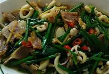 韭菜炒鱿鱼菜品 > 鱼 > 鱿鱼 > 韭菜炒鱿鱼