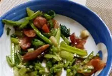 韭菜炒香干是一道菜品,制作原料主要有韭菜、香干等。鲜嫩可口,有点小小的微辣,加入切成段的韭菜,翻匀,…全部>>