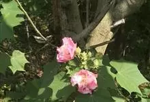 木芙蓉,锦葵科木槿属落叶灌木或小乔木。小枝上有细绒毛;叶片为卵状心形,托叶为披针形,常早落;花单生,花萼为钟形,花冠初为白色或淡红色,后逐渐变为深红色;果实为扁球形,有淡黄色的毛附着。花期8到10月。…全部>>