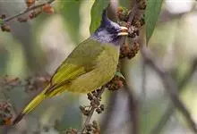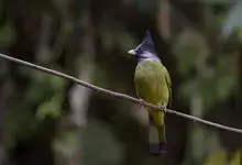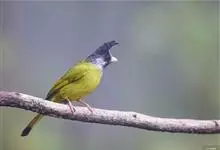 凤头雀嘴鹎:属小型鸟类,体长18-22厘米。嘴粗短、呈象牙色或乳黄色,前额和脸灰色,头顶黑色,有一朝前竖立的黑色羽冠。上体橄榄绿色,下体黄绿色,尾羽黄绿色具宽阔的黑褐色端斑。…全部>>