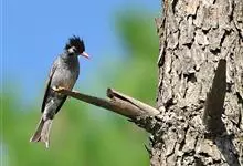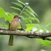 凤头雀嘴鹎:属小型鸟类,体长18-22厘米。嘴粗短、呈象牙色或乳黄色,前额和脸灰色,头顶黑色,有一朝前竖立的黑色羽冠。上体橄榄绿色,下体黄绿色,尾羽黄绿色具宽阔的黑褐色端斑。…全部>>
