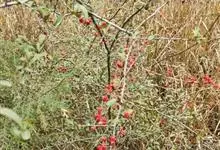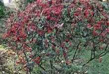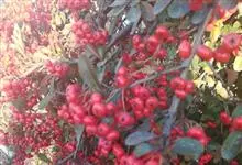 火棘 H. L. Li)是蔷薇科火棘属常绿灌木,老枝呈暗褐色;叶片呈倒卵形,边缘有钝锯齿,齿尖向内弯,两面皆无毛;叶柄短,无毛或嫩时有柔毛;花序是复伞房状,花瓣呈白色近圆形;果球近圆形,…全部>>