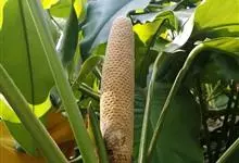 海芋 K. Koch),是天南星科海芋属的大型常绿草本植物;具匍匐根茎,有直立地上茎,基部生不定芽条;叶多数,亚革质,草绿色,箭状卵形,叶柄绿或污紫色,螺旋状排列,粗厚;花序梗圆柱形,绿色,有时污紫色,…全部>>