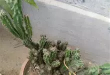 胭脂掌 Mill.)仙人掌科肉质灌木或小乔木,高2-4米,圆柱状主干直径达15-20厘米。分枝多数,椭圆形、长圆形、狭椭圆形至狭倒卵形,无毛,暗绿色至淡蓝绿色;小窠散生,不突出。叶钻形,绿色,早落。…全部>>