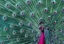 绿孔雀是鸡形目雉科孔雀属鸟类,别名:孔雀、越鸟、爪哇绿孔雀。雄性绿孔雀全身呈翠绿色,并反紫铜色光。头顶有一簇直立的冠羽,尾上复羽发达的约长1米,每羽端部有一个蓝色和翠绿色镶嵌的眼状斑,…全部>>