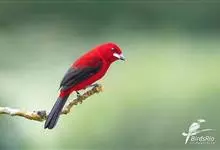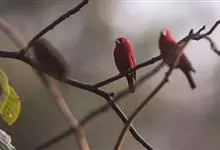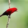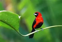 血雀雀科朱雀属鸟类,体重36-49克;体长155-182毫米。雄鸟除眼先、翼与尾为黑色外,通体为鲜红色;嘴鲜黄;雌鸟暗橄榄绿色,羽端较淡或带黄色;腰鲜黄;嘴较暗。虹膜褐色;嘴黄色;腿和脚褐色。…全部>>
