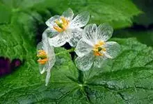 山荷叶属为多年生草本,有匍匐状、粗厚、具节的根茎;根生叶1枚,大,盾状,分裂,生于粗厚的柄上其状如伞,花茎亦具同形,互生的叶2枚,但较小,叶柄盾状着生于近边缘;花白色,为一顶生的聚伞花序;萼片6,…全部>>