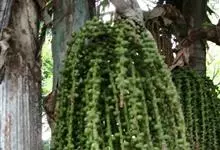 鱼尾葵,棕榈科鱼尾葵属植物。鱼尾葵幼叶近革质,老叶厚革质;羽片互生,罕见顶部的近对生,最上部的羽片大,呈樱形,侧边的羽片小,菱形似鱼尾。外缘笔直,花聚生3朵,花瓣黄色;萼片宽圆形;花药线形,黄色,…全部>>