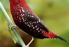 红梅花雀小型鸟类,体长9-10厘米。雄鸟通体朱红色,背、肩、胸等满布白色小斑点,两翅和尾黑褐色均具白色端斑,嘴红色,脚蜡黄色。雌鸟上体淡褐色或赭褐色,翅上中覆羽、大覆羽和内侧飞羽末端具白色斑点,…全部>>