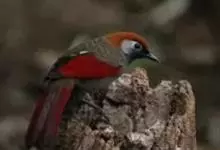 橙颊梅花雀体长约10厘米,头部灰色,两侧有大块橙色区域,嘴基及眼下方有黑纹,两条黑纹间呈白色,颊部有橙红色块斑,喙为红色至橙红色,背部及翼为褐色,腰为鲜红色,身体腹面淡灰色,腹部白色至皮黄色,…全部>>
