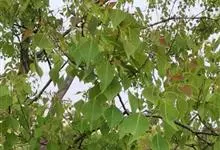 乌桕 Small)大戟科乌桕属木本植物。树皮为暗灰色,有竖向的裂纹;枝条展开很广,有皮孔;叶片互生,形状为菱形、菱状卵形,也有菱状倒卵形;花为单性花,雌雄同株,花丝分离;子房卵球形,…全部>>