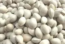白果,又名鸭脚子、灵眼、佛指柑,银杏、公孙树子,是银杏的种仁。椭圆形,长1.5~2.5cm,宽1~2cm,厚约1cm。表面黄白色或淡黄棕色,平滑坚硬,一端稍尖,另端钝,边缘有2~3条棱线,中种皮质硬…全部>>