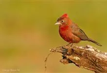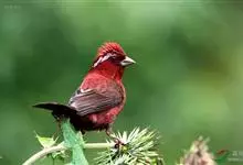 酒红朱雀小型鸟类,体长13~15厘米。雄鸟通体深红色,头部深朱红或棕红色,下背和腰玫瑰红色,眉纹粉红色而具丝绢光泽。两翅和尾黑褐或灰褐色、具暗红色狭缘,内侧两枚三级飞羽具淡粉红色先端。…全部>>
