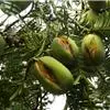 香榧,别名细榧、羊角榧等,为红豆杉科榧树属榧树中的优良栽培类型,是中国特有的珍稀干果树种。其小枝下垂,一、二年生小枝绿色,三年生枝呈绿紫色或紫色;叶深绿色,质较软;种子连肉质假种皮,宽矩圆形或倒卵圆形,…全部>>