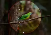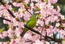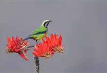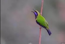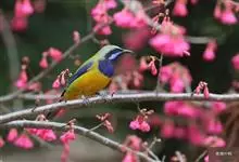 橙腹叶鹎体形大小和金额叶鹎相似,体长16~20厘米。额至后颈黄绿色,其余上体绿色,小覆羽亮钴蓝色,形成明显的肩斑。颏、喉、上胸黑色具钴蓝色髭纹,其余下体橙色。飞羽和尾羽雄鸟黑色、雌鸟绿色。…全部>>