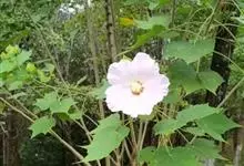 木芙蓉,锦葵科木槿属落叶灌木或小乔木。小枝上有细绒毛;叶片为卵状心形,托叶为披针形,常早落;花单生,花萼为钟形,花冠初为白色或淡红色,后逐渐变为深红色;果实为扁球形,有淡黄色的毛附着。花期8到10月。…全部>>