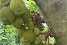 大果榕是桑科榕属的小乔木,株高可达10米;幼枝被柔毛;叶互生,宽卵状心形或近圆形;雄花无梗、匙形、花丝长,雌花生于雌株榕果内,子房白色;榕果簇生于树干基部或老茎短枝上、扁球形或陀螺形,…全部>>