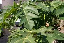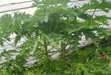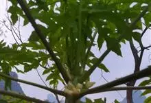 番木瓜,番木瓜科番木瓜属的常绿软木质小乔木,高达10米,具有乳汁;茎不分枝或有时于损伤处分枝;叶大且聚生于茎顶,近似盾形,叶柄中空;花单性或两性,有些品种雄株偶尔生两性花或雌花,…全部>>