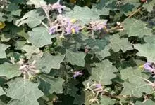 刺天茄,是茄科茄属的多年生草本植物。茎直立,枝条有刺;叶片大,互生,卵形或椭圆形,有长柄,叶面有短柔毛;花单生于枝顶,外面密被星状绒毛及细直刺,果被星状毛及直刺,浆果球形,光亮,…全部>>