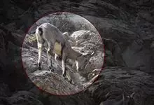岩羊是偶蹄目牛科岩羊属哺乳动物。颜色与岩石相像,两性皆具角,雄羊角大而弯曲,角外表具不明显的横棱且体壮实,雌羊角短小;头较小,眼大,耳小,颏下无须;体背面为棕灰或石板灰色略有蓝色反光,…全部>>