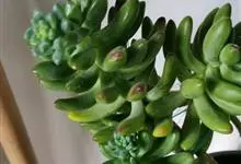 筒叶花月,是景天科青锁龙属的多年生草本植物。植株多分株,灌木状,茎较粗壮,圆柱形,表皮灰褐色;叶片肉质,互生,呈圆筒状,簇生于茎或分枝顶端,叶端呈斜截形,截面为椭圆形;花呈星状,淡白色;花期秋季。…全部>>