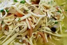 金针菇鸡丝汤是一道由金针菇、鸡脯肉、盐、胡椒粉、鸡精等做成的美食。全部>>