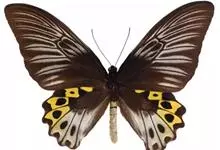 金裳凤蝶是凤蝶科、裳凤蝶属的动物。金裳凤蝶身体呈黑色,头、颈和胸侧有红毛,腹部有黑黄两色相间条纹,雄蝶前翅黑色,具黑天鹅绒光泽,各脉两侧灰白色,后翅金黄色,各室外缘有等腰三角形黑斑1枚,斑内侧有晕,…全部>>