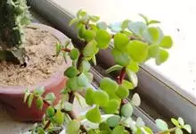 唐印为景天科伽蓝菜属的多年生肉质草本植物。植株中型,株高50厘米,宽20厘米,多分枝;叶片肉质,对生,卵形,全缘,先端钝圆,叶片淡绿色至灰绿色,表面被有厚厚的白粉,光照充足时,叶缘呈红色;圆锥花序,…全部>>