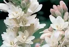 晚香玉是石蒜科、晚香玉属多年生草本植物。晚香玉茎直立,不分枝;基生叶片簇生,线形,顶端尖,深绿色,向上渐小呈苞片状;穗状花序顶生,花乳白色,浓香,长圆状披针形;蒴果卵球形;种子多数,稍扁;花期7-9月。…全部>>