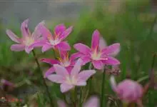 小韭兰学名韭菜莲又名风雨花、菖蒲莲、红玉帘和旱水仙,多年生草本,鳞茎卵球形,基生叶常数枚簇生,线形,扁平,花单生于花茎顶端,下有佛焰苞状总苞,花玫瑰红色或粉红色,蒴果近球形,种子黑色,花期夏秋。韭莲…全部>>