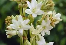 晚香玉是石蒜科、晚香玉属多年生草本植物。晚香玉茎直立,不分枝;基生叶片簇生,线形,顶端尖,深绿色,向上渐小呈苞片状;穗状花序顶生,花乳白色,浓香,长圆状披针形;蒴果卵球形;种子多数,稍扁;花期7-9月。…全部>>