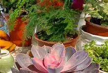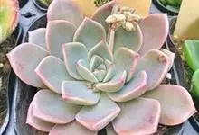 紫珍珠是景天科石莲花属的多年生肉质草本植物。植株中小型;叶片肉质,匙形,呈莲座状紧密排列;叶片粉紫色,叶缘呈粉白色,光照充足时颜色亮丽,不足时叶色会呈现深绿色或灰绿色,叶面光滑,被轻微白粉,…全部>>