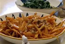 京酱肉丝,是一道知名度很高的菜肴,它是北京菜中的经典代表菜之一。制作时选用猪瘦肉为主料,辅以甜面酱、葱、姜及其它调料,用北方特有烹调技法“六爆”之一的“酱爆”烹制而成。 成菜后,咸甜适中,酱香浓郁…全部>>